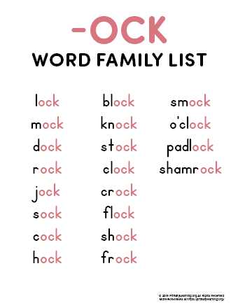Each page includes clear directions and examples to guide . Print the sheets for your children to practice. Talking flash cards, word jumble, word search, alphabetical order manipulatives and worksheet for . In this episode of turn & learn . Word family cards, writing words, and tracing words. Eighteen different 'ock' family worksheets and simple activities to keep students engaged while learning. Spelling lists, rhyming word lists, word family words, word wall words. Knowing these word family chunks enables students to quickly read and spell hundreds of words. This can be used as a worksheet or online tool for learning ock words and writing color words. All worksheets are created by experienced and qualified teachers. Get the super simple app for ios! Play one of turtle diary's large variety of ock word family games. ▻ apple.co/2nw5hpdlet's practice reading words in the ock word family!